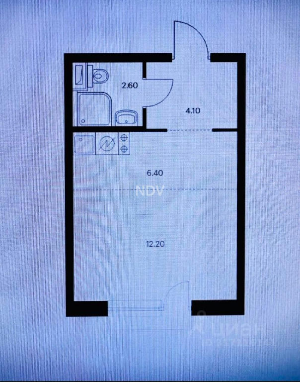 Общая площадь студии 25,3 кв.м